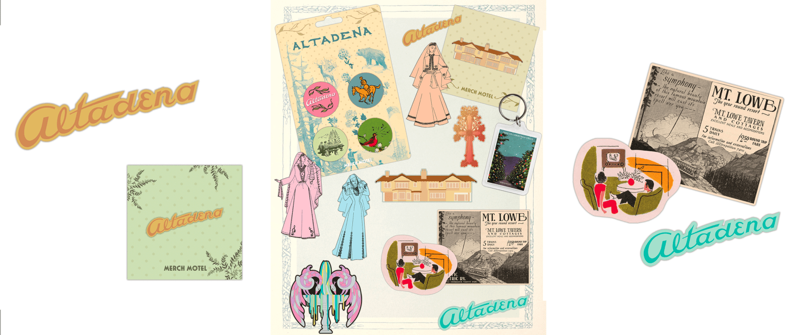 Through Merch Motel, I document historic sites and collaborate with businesses, organizations, museums, and non-profits to create products honoring their legacy. I knew I wanted to do something special for Altadena, so I worked on a collection of products to help raise funds. The collection is inspired by the feeling of Altadena, a charming world that’s hidden within Los Angeles. Some of the designs incorporate archival material; it’s an homage to this beautiful place.